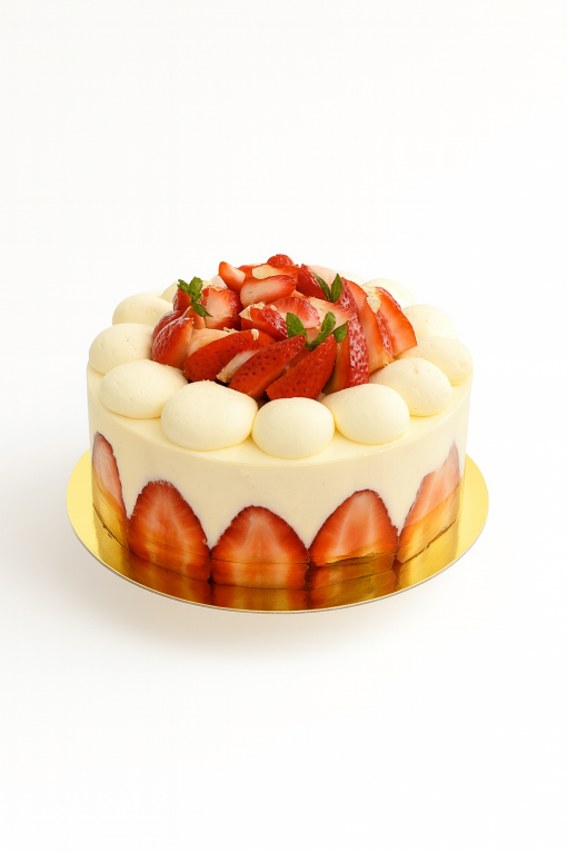 Un fraisier tout en douceur, composé d’une génoise moelleuse à la vanille, d’une crème légère à la vanille et de généreux morceaux de fraises fraîches.