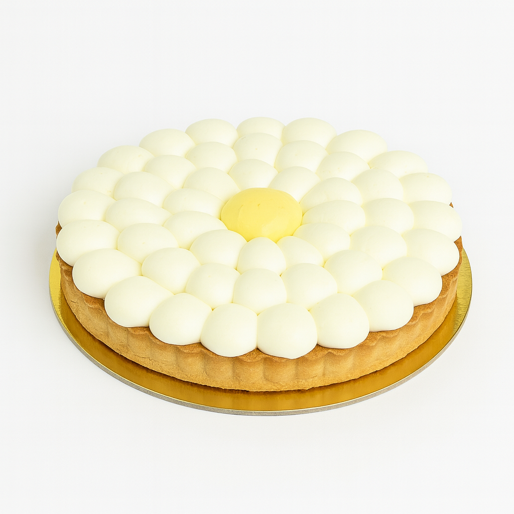 Une pâte sucrée croustillante, garnie d’une crème au citron au jus fraîchement pressé, délicatement adoucie par une ganache vanille onctueuse. Un équilibre subtil entre acidité et douceur, pour une tarte pleine de fraîcheur.